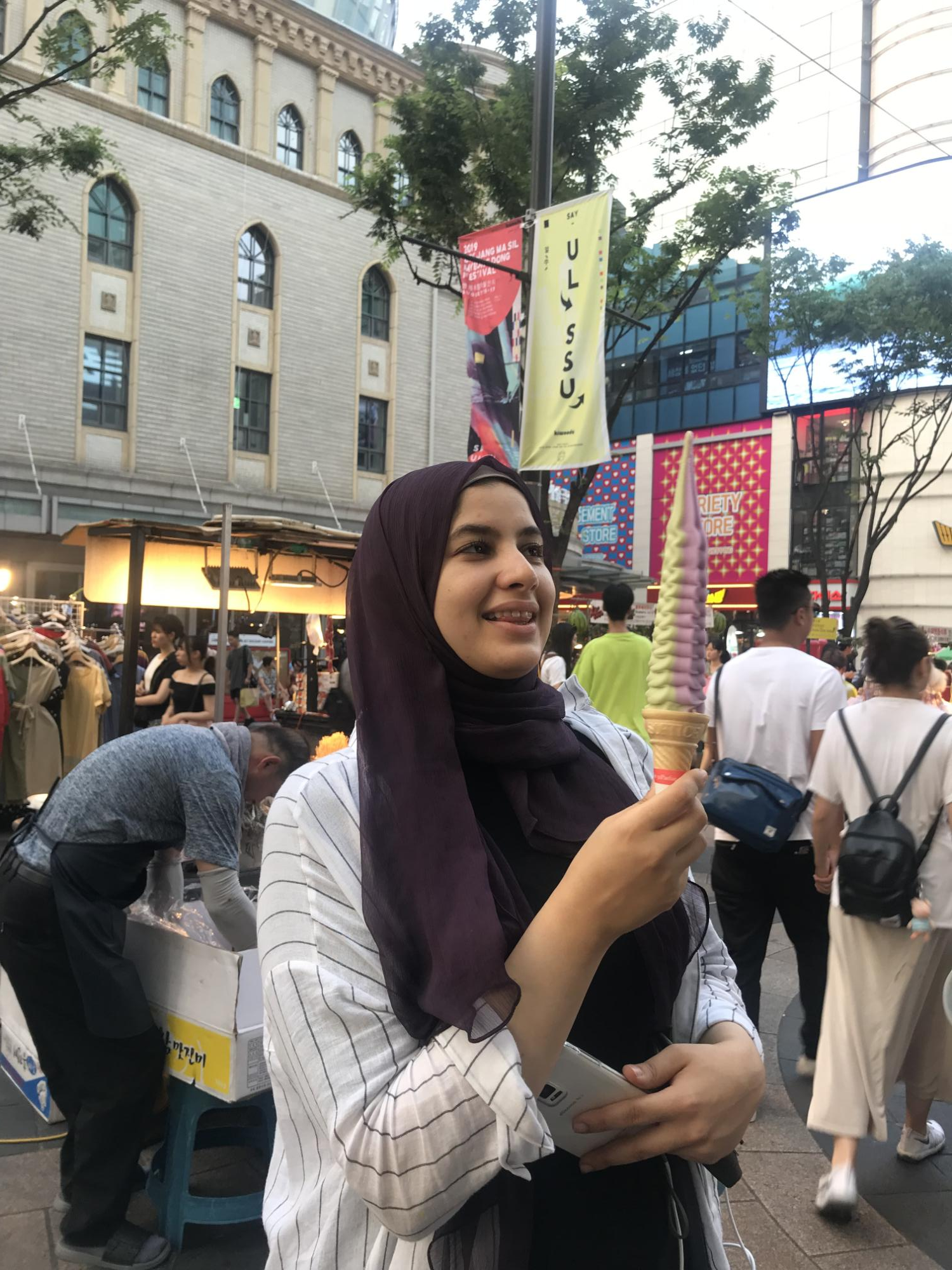 I can describe South Korea as a place with a beautiful view of high-rise buildings and with green beautiful mountains as a background. This harmonious blend of modern and nature made me fall in love with every single thing in South Korea.
