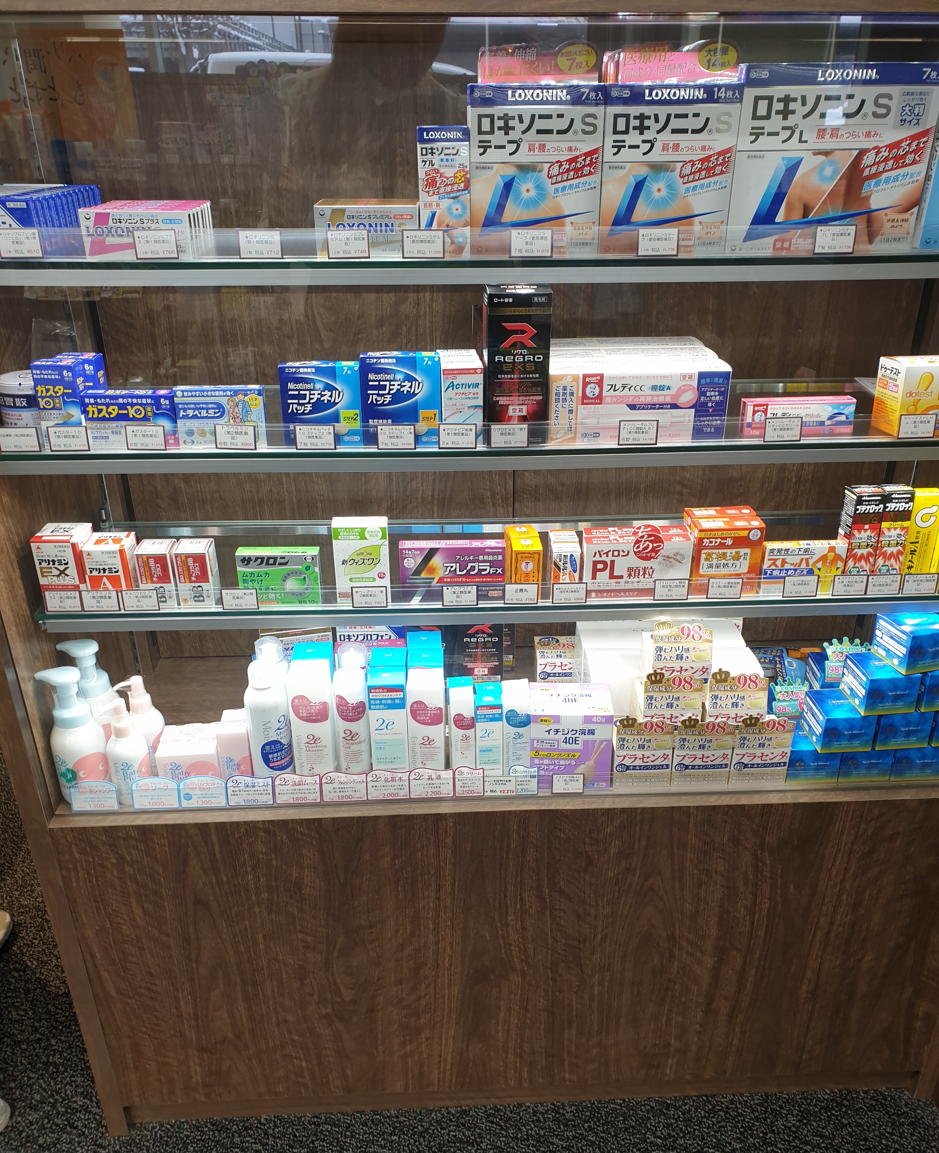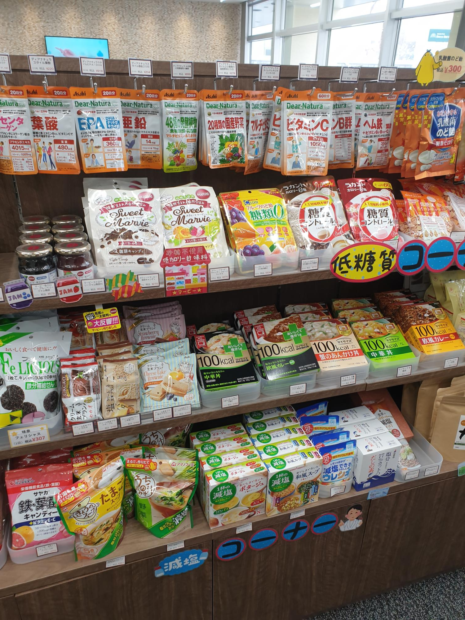 일본의 OTC는 크게 3가지 단계로 나뉩니다. 이는 부작용, 용량, 중독성 여부 등을 종합적으로 판단하여 정해집니다. 제1류 의약품의 경우 오직 약사만이 판매할 수 있습니다. 제2류, 3류 의약품의 경우에는 advisor라는 별도의 면허소지자에 의해 판매될 수 있습니다. 건강기능식품에는 비타민제, 저칼로리의 당뇨병용 사탕, 신장 기능 환자용 저염식 등이 있습니다. 해당 약국은 대형 체인약국이기 때문에 회사에 소속된 영양사가 1명 있었습니다. 영양사는 건강기능식품 상담을 해주거나 환자 집에 직접 방문해서 영양 상담을 해주기도 합니다.