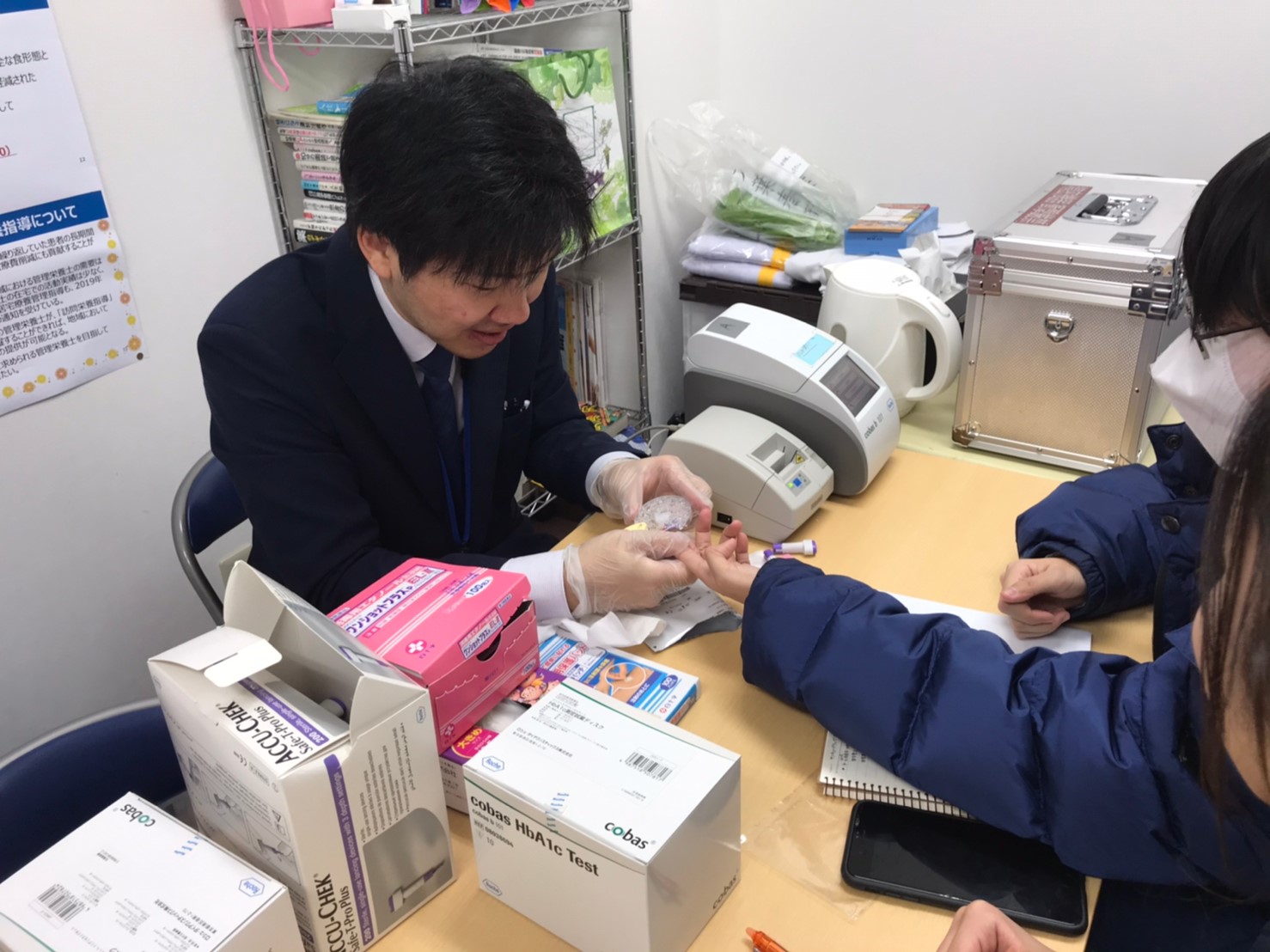 일부 일본의 약국에서는 혈액, 혈압 검사를 실시하고 있습니다. 법이 개정되어 가능하게 되었다고 합니다. 리필 처방전의 가장 큰 맹점은 환자상태를 그때마다 확인하지 않고 동일한 처방전을 쓰는 것입니다. 하지만 채혈검사를 통해 혈당은 물론 지질 수치까지 확인을 할 수 있기 때문에 약국에서도 환자의 상태를 파악할 수 있다는 장점이 있습니다. 또한, 약 5분이라는 검사 시간 동안 약사가 환자의 운동 및 식생활 방식을 체크할 수 있다고 합니다.