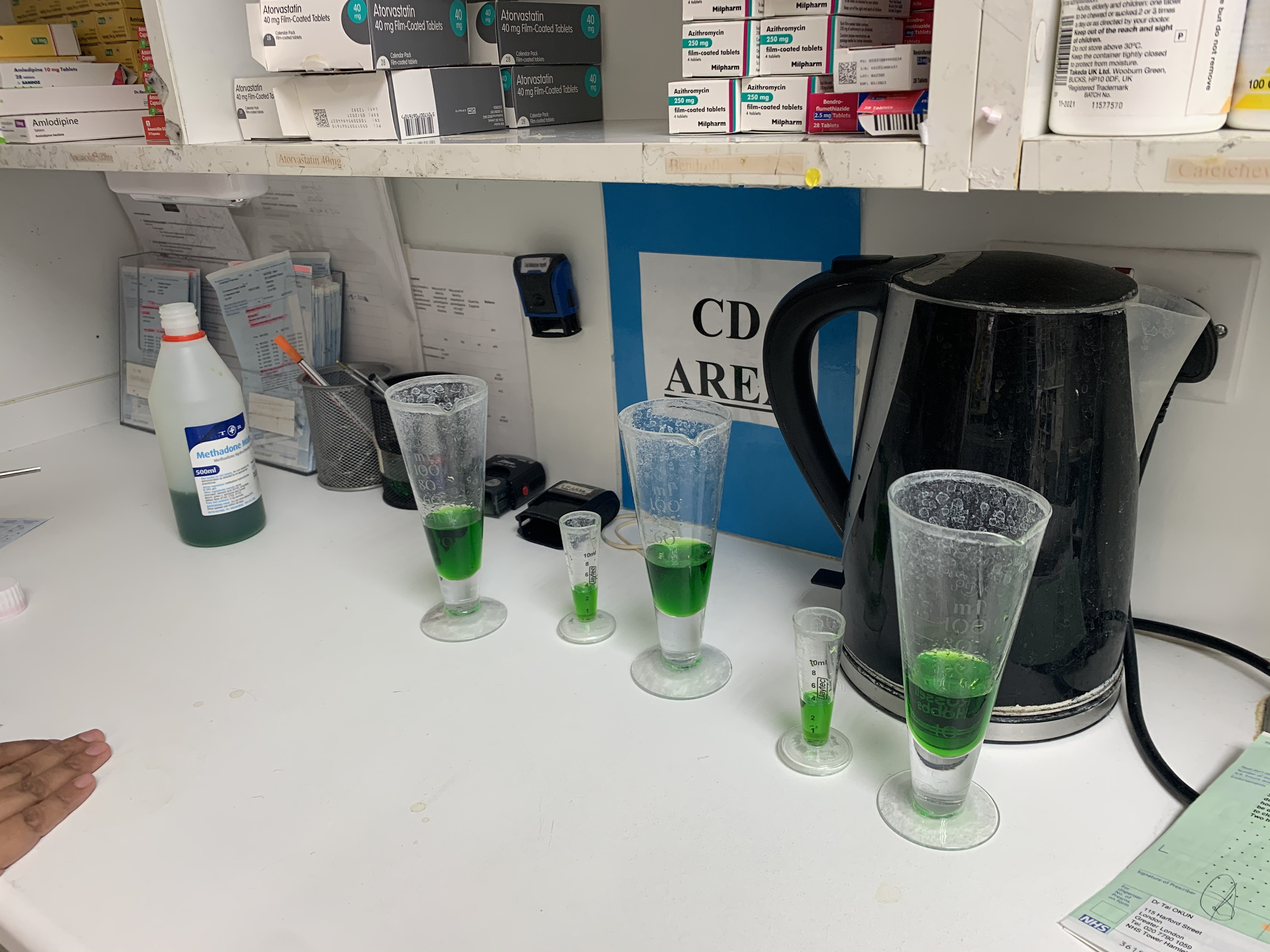약국장이었던 Jabin은 항상 Patient Safety를 강조했고, 그래서 모든 것들이 다 체계화 되어 있었습니다. GP에 의한 처방전은 녹색, 간호사에 의한 처방전은 보라색, 치과의사에 의한 처방전은 노란색으로, 처방하는 사람에 따라 처방전의 색깔이 달랐습니다. 처방전을 받게 되면 먼저 Clinical check를 통해 용량이 제대로 처방되었는지 확인합니다. 그리고 대부분 처방전이 자동으로 병원에서 약국으로 전달되기 때문에 환자가 나중에 약을 찾으러 오거나 약을 환자 자택으로 배달하게 되는데 그 날짜가 처방전을 받은 날짜로부터 6개월 이내인지 확인하는 Legal check를 합니다.