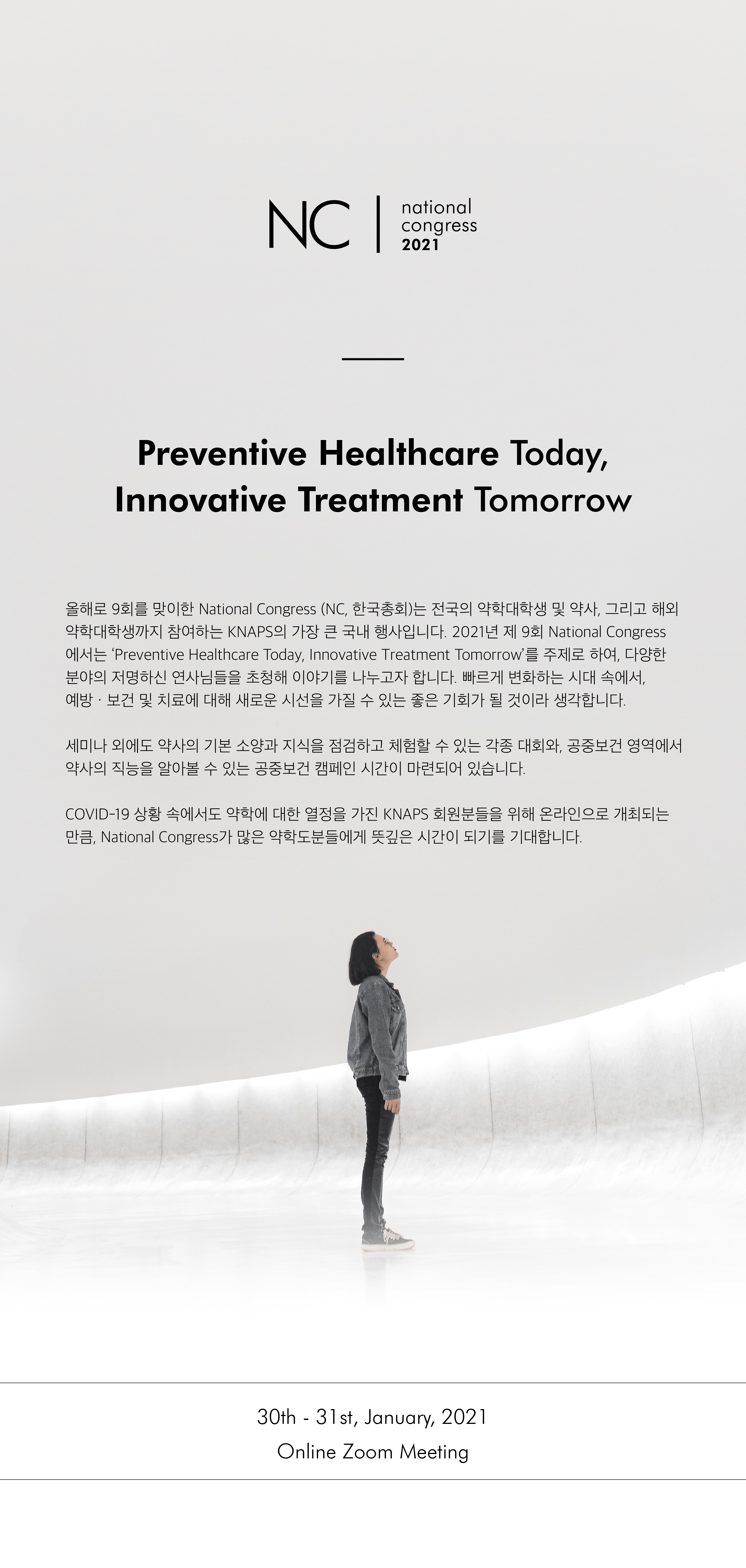 KNAPS의 가장 큰 국내 행사인 National Congress (NC)에 여러분을 초대합니다!🎉 본 행사에서는 약업계 및 다양한 분야의 저명하신 연사님들을 초청하여 세미나를 듣고, 그 외 복약상담대회, 조제대회,