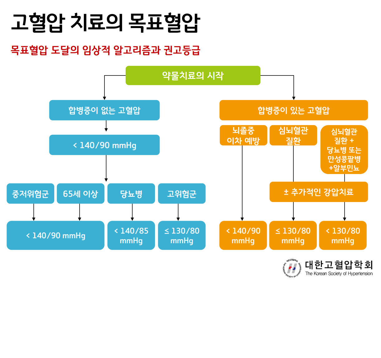 - 수축기 혈압: 140mmHg 이상 또는 이완기 혈압이 90mmHg 이상일 때 고혈압을 진단