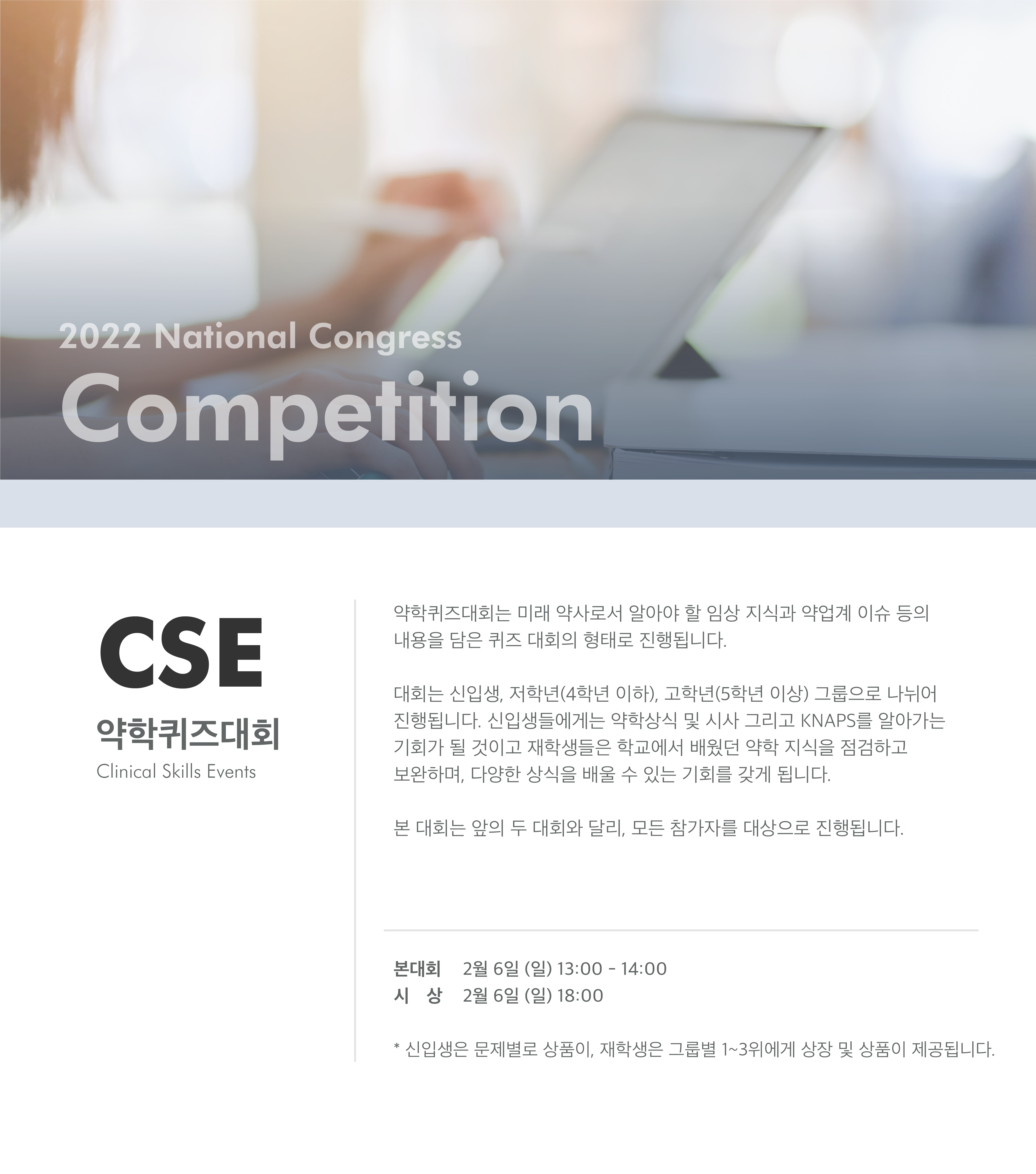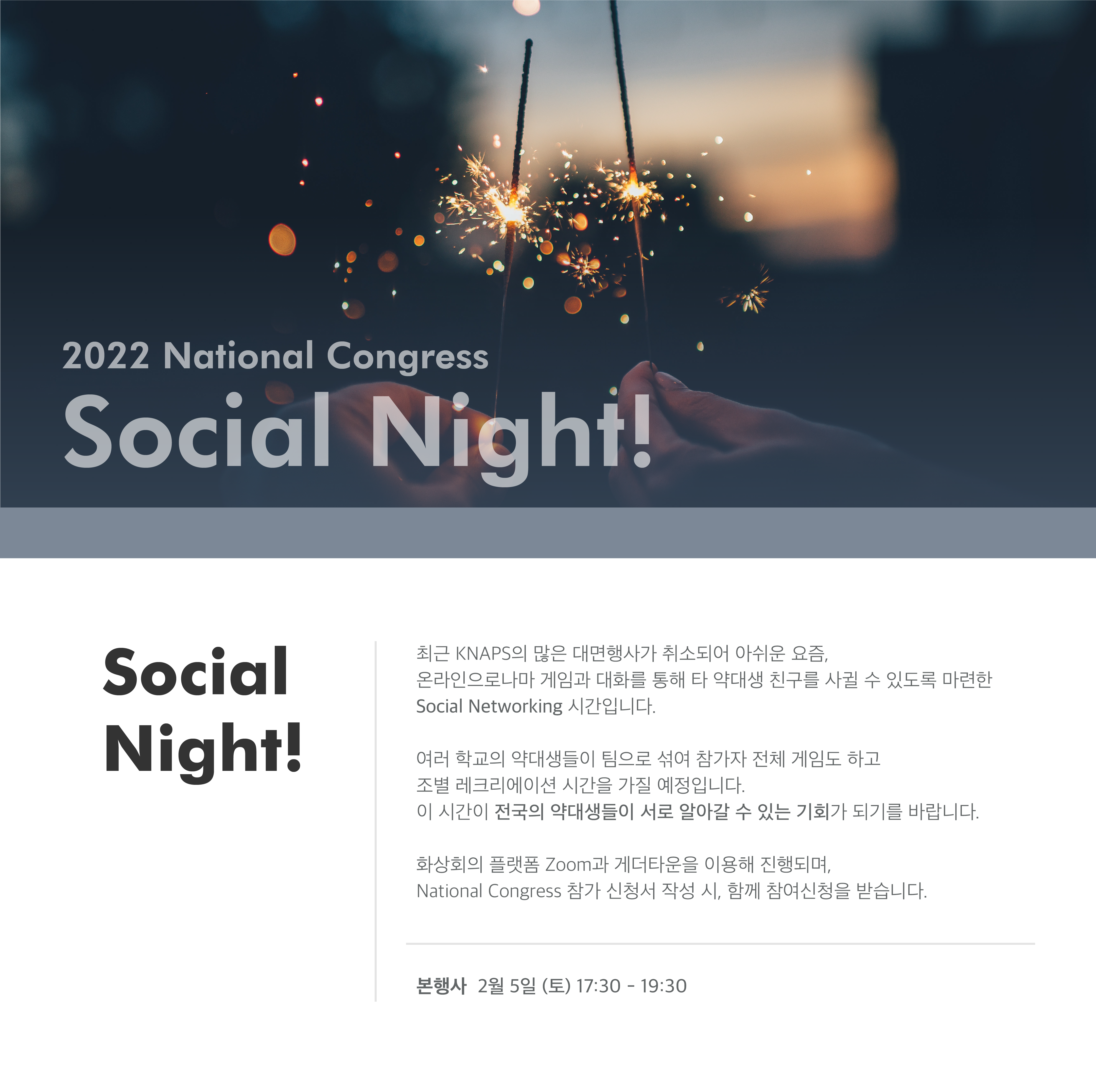 KNAPS의 가장 큰 국내 행사인 National Congress (NC)에 여러분을 초대합니다!🎉 본 행사에서는 약업계 및 다양한 분야의 저명하신 연사님들을 초청하여 세미나를 듣고, 복약상담대회 Workshop과 복약상