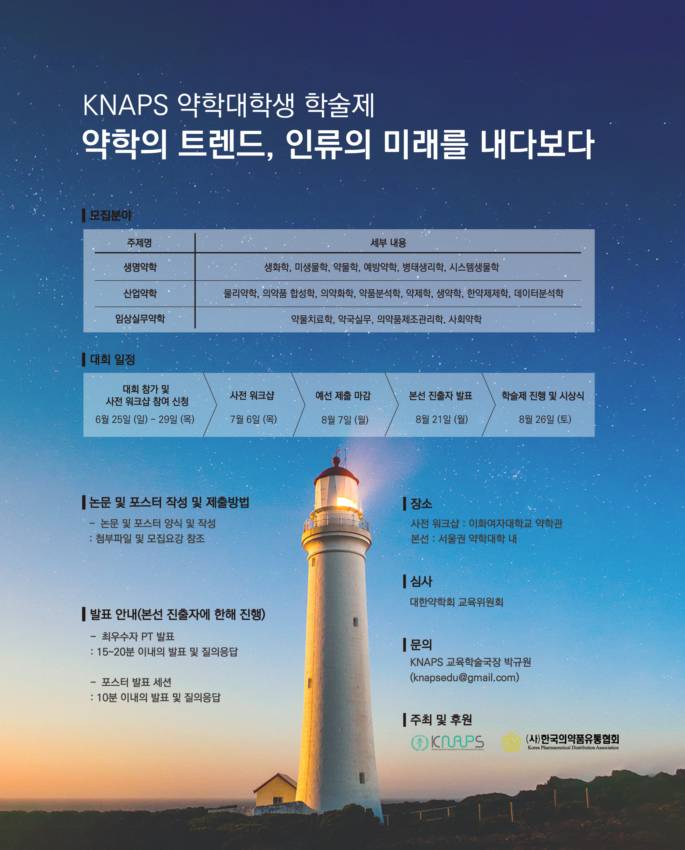 KNAPS 교육학술국에서 주최하는 첫번째 약학대학생 학술제&사전 워크숍에 여러분을 초대합니다!