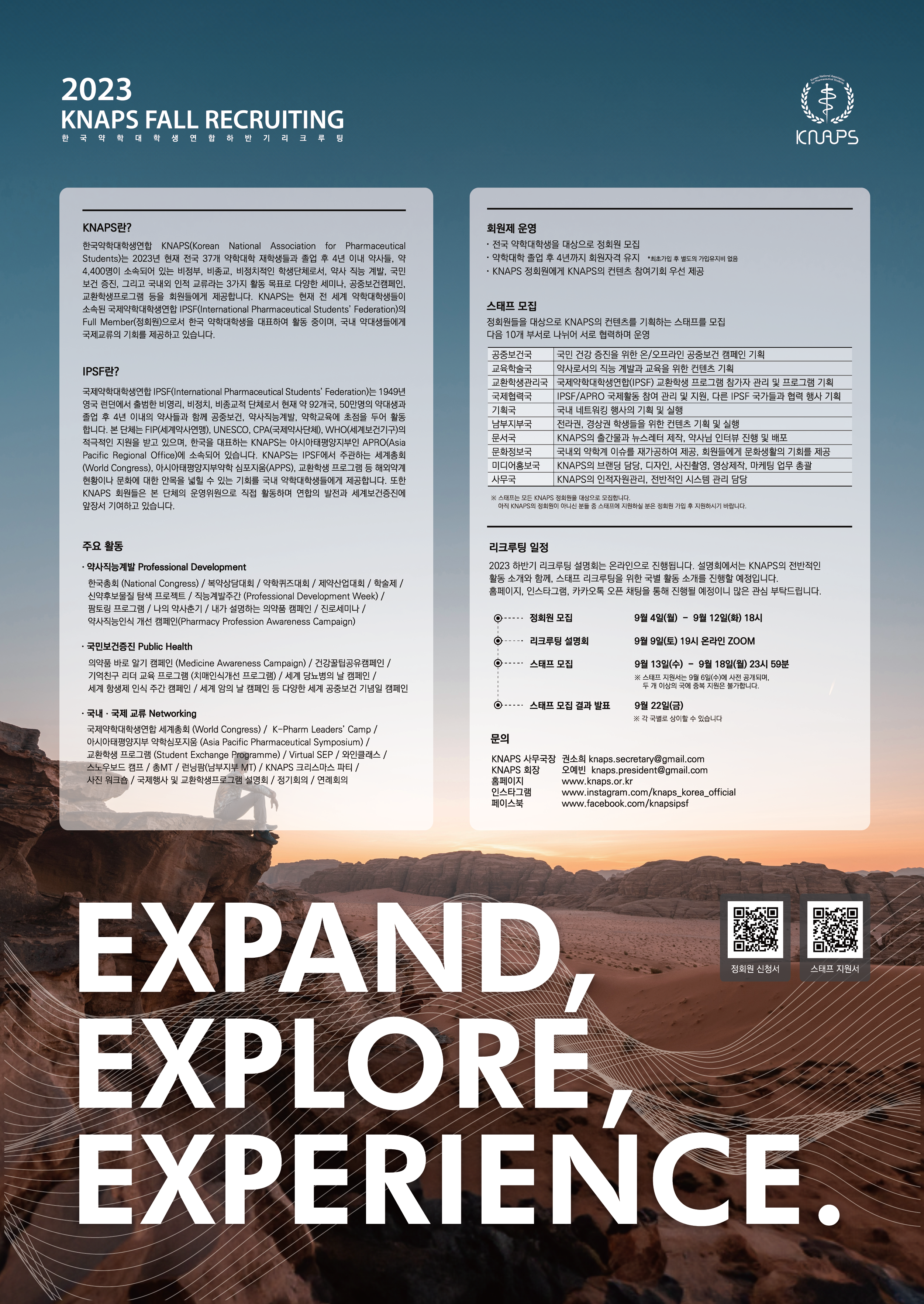 KNAPS 2023 하반기 정회원/스태프 리크루팅 (0) | 2023.09.02 |