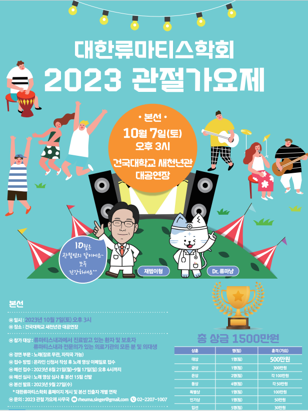 - 대한류마티스학회 2023 관절가요제 (https://www.rheum.or.kr/board/list.html?code=notice&num=3093)
