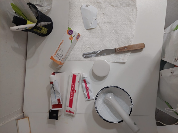 이미 공장에서 배합, 제조되어 나오는 우리나라와는 다르게 환자별로 customizing하여 크림을 제조하는 것 또한 새로웠습니다. 수기로 된 처방전에는 각 약품을 몇 g으로 크림을 제조하라는 것 까지 표기되어 있었고 이를 저울로 달고 잘 섞어서 크림을 직접 조제하였습니다. 미용 목적의 크림이 아닌 피부 질환 등의 의약품을 조제한다고 생각하니, 좀 더 신중하게 기하였던 기억이 납니다.