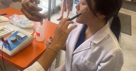 개인적으로 실습 중 가장 신기한 문화였는데, 약국과 제약회사가 파트너쉽을 맺어 회사로부터 고용된 Food technologist분들이 약국에 상주하고 계셨습니다. 한 달에 한 번 정도 방문하여 원하는 환자와 건강상담 후 그에 맞는 영양제(주로 건기식)을 추천해주셨습니다. 자기장을 이용하여 우리 체내의 수분량, 필수 아미노산의 결핍 유무 등을 측정해 주는 시스템입으로 다수의 환자가 매우 만족하는 듯 보였습니다. 이마, 관자놀이, 복부 등에 검진기를 가져다 대는데, 굉장히 신기하고 재미있는 경험이었습니다.
