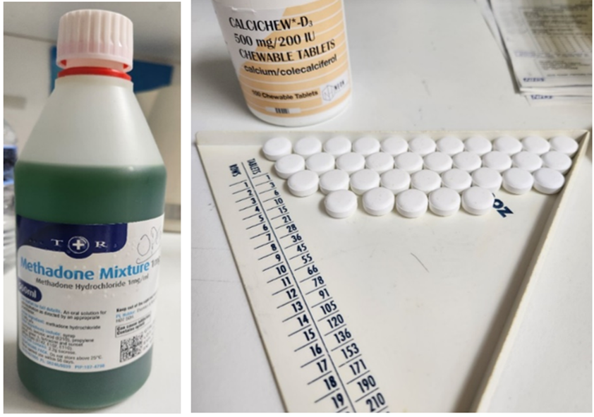 실습기간동안 약사님들의 업무를 지켜본 결과 영국 약사의 역할이 상당히 다양함을 알 수 있었습니다. 우선 Greenlight Pharmacy의 경우 약국에서 코로나19 검사, 코로나19 백신 및 독감백신 접종부터 여행자백신(Travel Clinic) 접종, 마약 중독자들을 위한 CD(Controlled Drug) 처방 및 관리, 사후피임약(Morning After Pill) 처방, 혈압 측정 등을 관리하였습니다. 그 중에서도 CD 관리가 매우 흥미로웠는데, 영국의 지역약국에는 마약중독증세를 완화시키기 위한 약인 메타돈, 옥시코돈, Buprenorphine 등을 NHS에서 관리하는 마약중독자들에게 일정주기(보통 하루마다)에 처방해주는 시스템이 있습니다. 해당 약들은 따로 금고 안에 보관되어 있었고 이들에 대한 관리를 매일 아침, 저녁마다 진행해야 했습니다. 또한 메타돈과 옥시코돈, buprenorphine은 정제였지만 메타돈 mixture의 경우 용액제로 환자마다 처방받는 용량이 모두 달랐기 때문에 이를 메스실린더에 정량하여 약사에게 확인받은 후 공병에 담아 처방하는 작업이 별도로 필요했습니다. 특히 보통 며칠씩 처방되는 일반 의약품들과는 다르게 특수한 사정이 있지 않다면 CD는 약국에서만 복용할 수 있었고 이에 대한 관리가 매우 철저하여 실제로 환자들은 처방받은 의약품을 삼키는 것까지 확인받은 후에야 돌아갈 수 있었습니다. 또한 CD의 경우 약국에서만 복용할 수 있지만 복용주기가 평균적으로 하루에 한번이었어서 매일마다 메타돈 정량을 진행해야 했고, 이렇게 정량되어 약사의 검수를 받은 의약품은 조제된 당일 바로 환자에게 전달되었으며 실제로 실습과정 중 이틀은 메타돈 용액제를, 하루는 모든 CD 관리를 해볼 수 있었습니다.