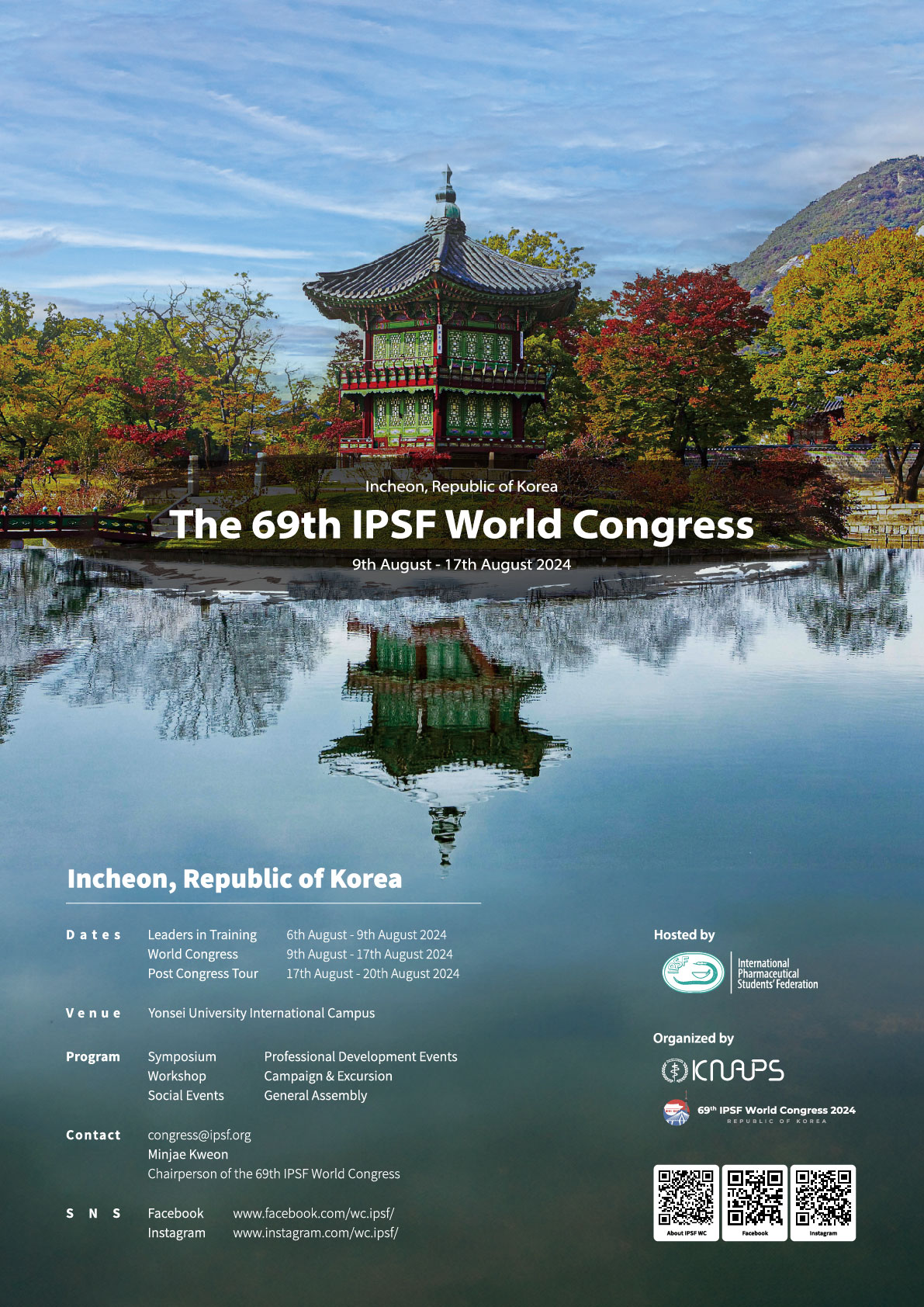 IPSF(κ΅μ μ½νλνμμ°ν©)μ 1λ μ€ κ°μ₯ ν° νμ¬μ΄μ μ μΈκ³ μ½νλλ€μ μΆμ μΈ World Congress(μΈκ³μ΄ν)μ KNAPS λνλ¨ 1μ°¨ μ λ° (Phase 1)μ΄ μμλμμ΅λλ€π