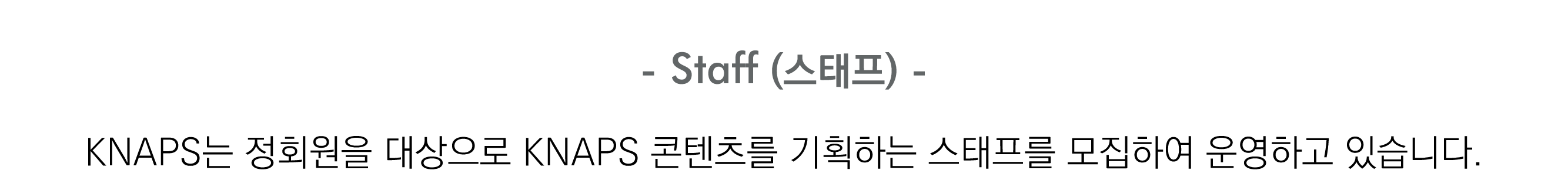 1. 자격 자신이 KNAPS 정회원인지 확인합니다. * 스태프는 KNAPS 정회원을 대상으로 모집하고 있습니다. |