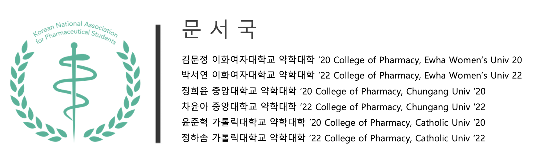 A6. 요즘 약대생들이 공직에 많이 가지 않아서 공직으로 많이 진출했으면 좋겠다는 말을 하고 싶어요. 공공기관에 취업한 동기들이 말하길, 약사 TO가 채워지지 않으니 화학과나 식품영양학과에서 많이 진출해 있다고 해요. 최근 한약사나 약 배달 문제 등을 보면 약사들의 입지가 갈수록 협소해지고 있다고 느껴요. 그래서 공공기관에서 제도적인 문제를 해결하고 약사에 대한 처우를 개선했으면 좋겠어요.