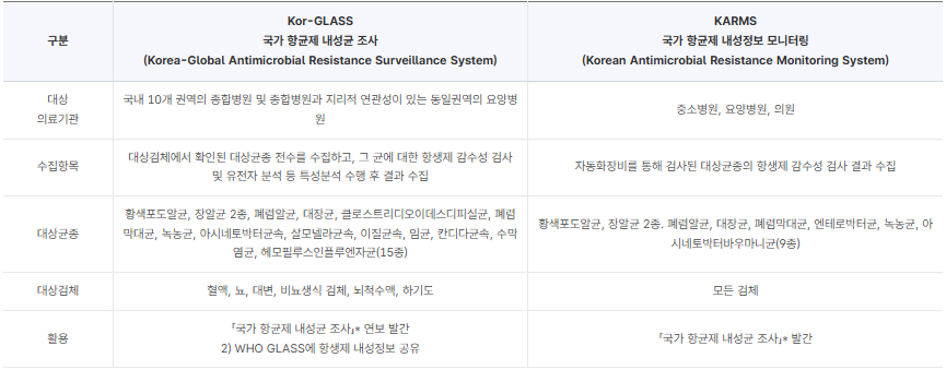 ① 국가 항균제 내성균 조사(Kor-GLASS)