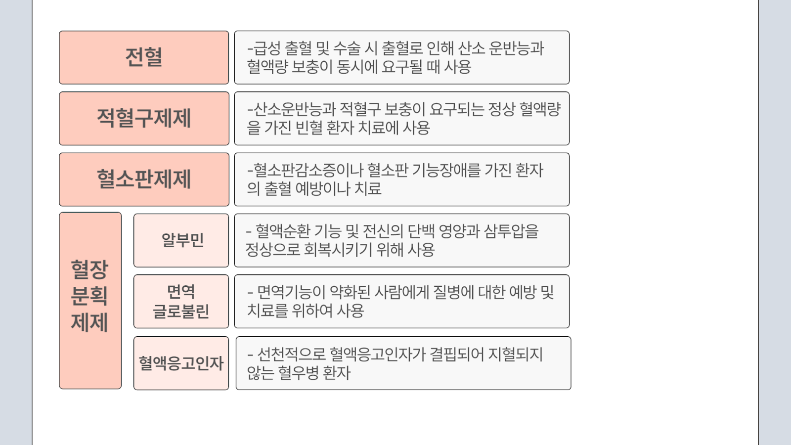 - 대한수혈학회>수혈의학정보>수혈과헌혈>수혈의 종류